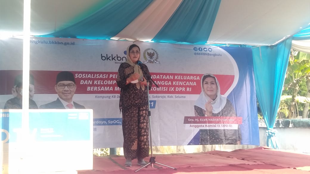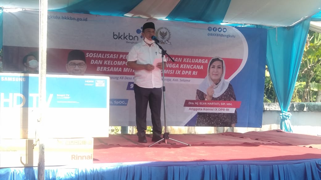 Minggu (09/05) Sosialisasi Penguatan Pendataan Keluarga dan Kelompok Sasaran Bangga Kencana Bersama Mitra Kerja Komisi IX DPR - RI Tahun 2021 hj. Elva Hartati, SIP. MM. Pendataan Keluarga merupakan kegiatan lima tahunan BKKBN untuk mendapatkan data keluarga Indonesia. Hal ini sesuai dengan Undang-undang No 52 Tahun 2009 tentang perkembangan kependudukan dan pembangunan keluarga, yang diperkuat dengan Peraturan Pemerintah No 87 Tahun 2014 tentang Perkembangan Kependudukan dan Pembangunan Keluarga, Keluarga Berencana, dan Sistem Informasi Keluarga. Peraturan tersebut mengamanatkan bahwa dalam rangka mendukung penyelenggaraan perkembangan Program Kependudukan Keluarga Berencana Pembangunan Keluarga (KKBPK) diperlukan Data dan Informasi Keluarga yang dikelola dalam sistem informasi keluarga (SIGA). Dihadiri Wakil Bupati, Drs, Gustianto, kepala BKKBn propinsi, kepala Bapeda Seluma,DP3APPKB,kecamatan Sukaraja Serta seluruh undangan masyarakat.acara ini berjalan sangat baik dan tetap menjaga protokol kesehatan, dilanjutkan pembagian hadiah